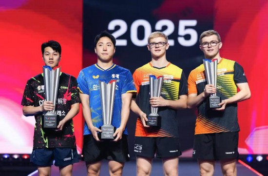 新华社拉斯维加斯7月12日电(记者黄恒)在12日举行的世界乒乓球职业大联盟(WTT)美国大满贯赛男双决赛中,韩国组合林仲勋/安宰贤以3:1逆转战胜来自法国的勒布伦兄弟获得冠军。 韩国组合林仲勋/安宰贤与法国的勒布伦兄弟在颁奖典礼上。…